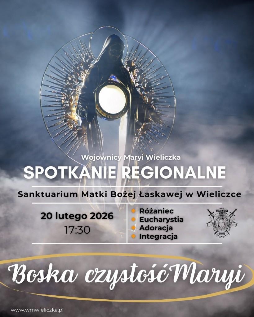 WM WIELICZKA ADRES SPOTKAŃ: Sanktuarium Matki Bożej Łaskawej w Wieliczce – kościół pw. św. Franciszka z Asyżu, ul. Brata Alojzego Kosiby 31, Wieliczka DZIEŃ SPOTKAŃ: Co do zasady każdy trzeci piątek miesiąca, godzina 17:30 LIDER: Artur Klimek OPIEKUN DUCHOWY: o. Mariusz Tabor wm.wieliczka@gmail.com https://www.facebook.com/@WojownicyMaryiWieliczka/ www.wmwieliczka.pl MAPA DOJAZDU Dołącz do wspólnoty Wojowników Maryi Zapraszamy wszystkich mężczyzn w wieku od 18 do 50 lat! Informacje Spotkania regionalne Inne wydarzenia Spotkania ogólnopolskie
